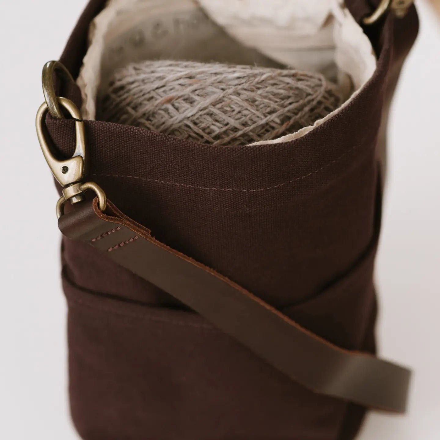 The Canvas Bucket Bag is a must-have for anyone who wants to easily knit anywhere, anytime.