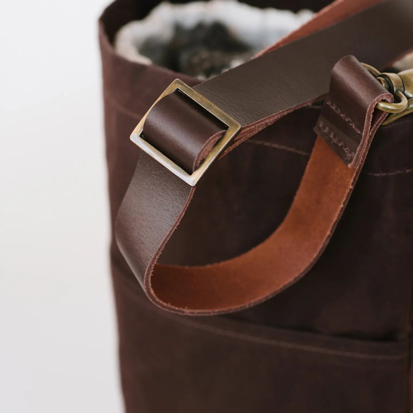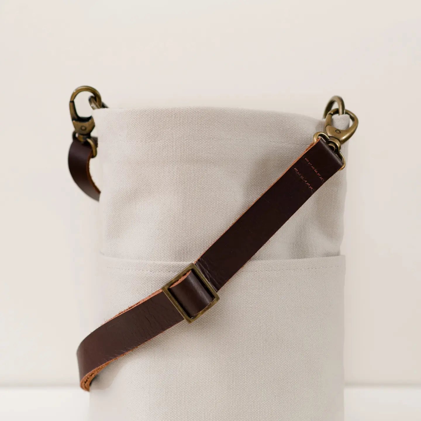 Each bag has a genuine leather removable adjustable crossbody strap. The crossbody strap adjusts from 24" - 46", accommodating a range of body types and wearing heights.