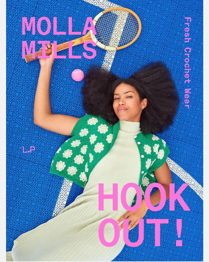 With Hook Out!, the well-loved crochet designer Molla Millsventures into new territory — crocheted clothing! Her experimentation has led to the 22 designs: to perfectly fitting yoke sweaters, smoothly draping trousers, and lacy, fluttering surfaces. Every design is made with movement and daily life in mind. You’ll find stripes and checks, and color — lots of it!